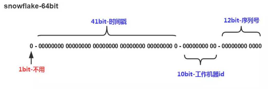 SnowFlake算法生成id的结果是一个64bit大小的整数,它的结构如下图: