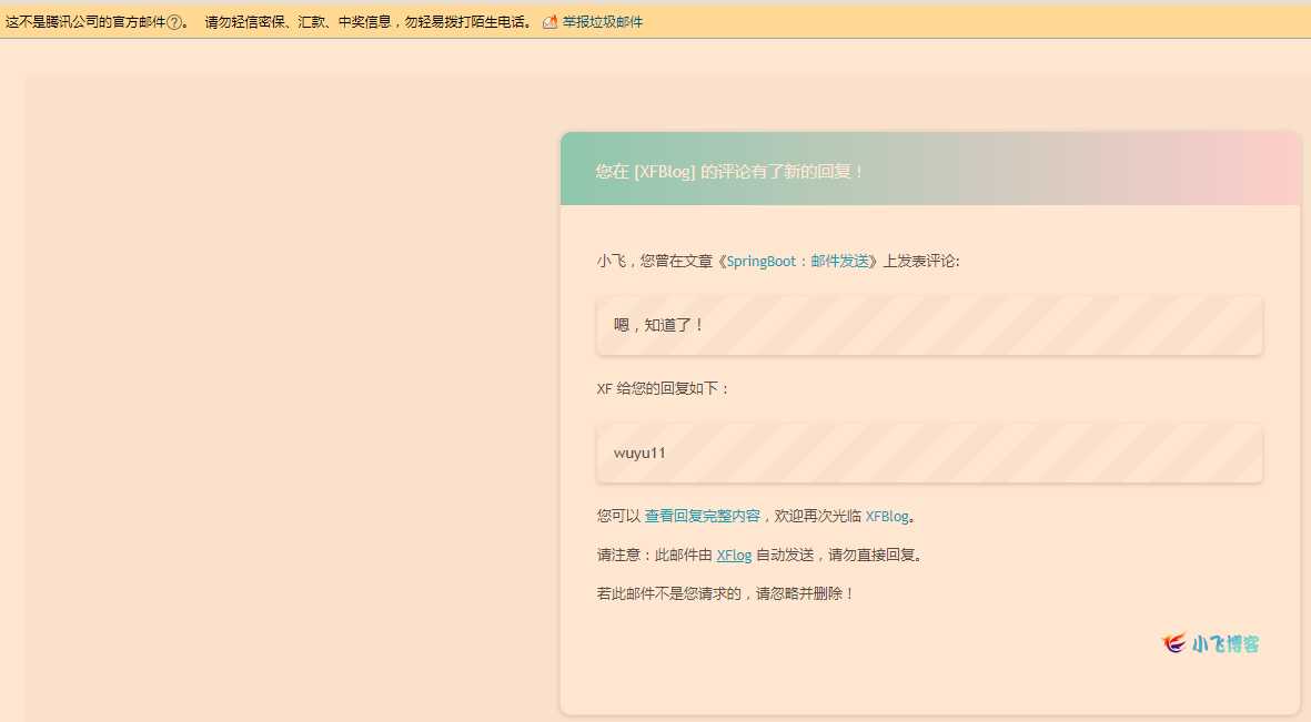您在 [<a th:href="${blogUrl}" style="text-decoration:none;color:#fff" target="_blank" rel="noopener">XFBlog</a>] 的评论有了新的回复!</p></div>