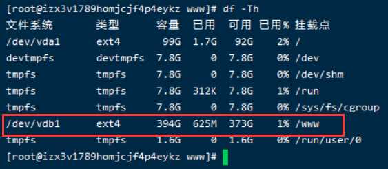 mount /dev/vdb /www