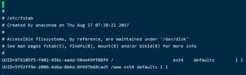 UUID=5f92ff9e-2006-4d6a-8b4d-8f497b68cad5 /www ext4 defaults 1 1