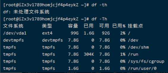 df -th查看当前系统挂载的情况:
