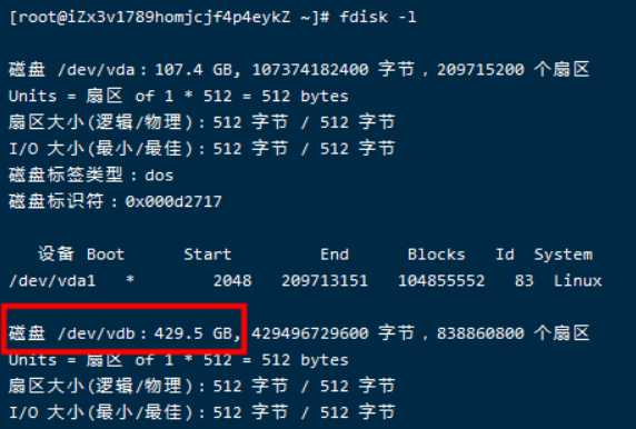 可以看到有一个/dev/vdb这个就是需要挂载的