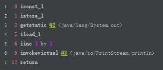 iinc 1 by 1 // 把局部变量中 i的值加1,此时局部变量i的值为2