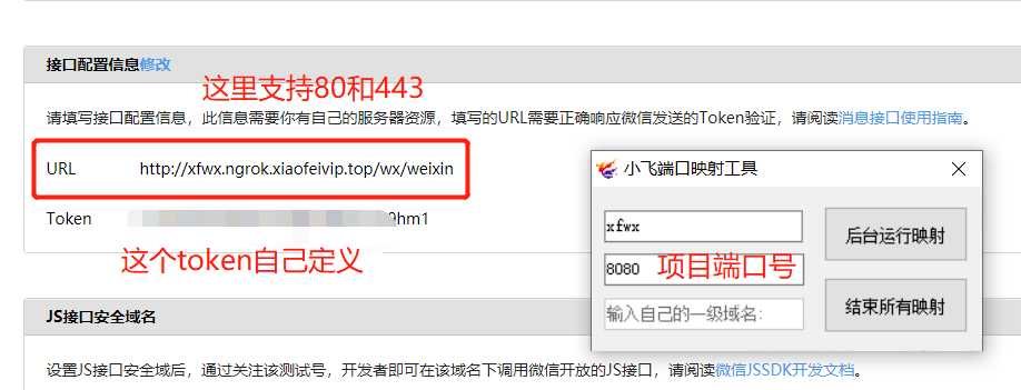 以上配置完成以后,往下拉会有一个测试号二维码,扫一下