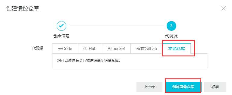 4、新建仓库等!选择我们新建的命名空间!代码源选择本地仓库!