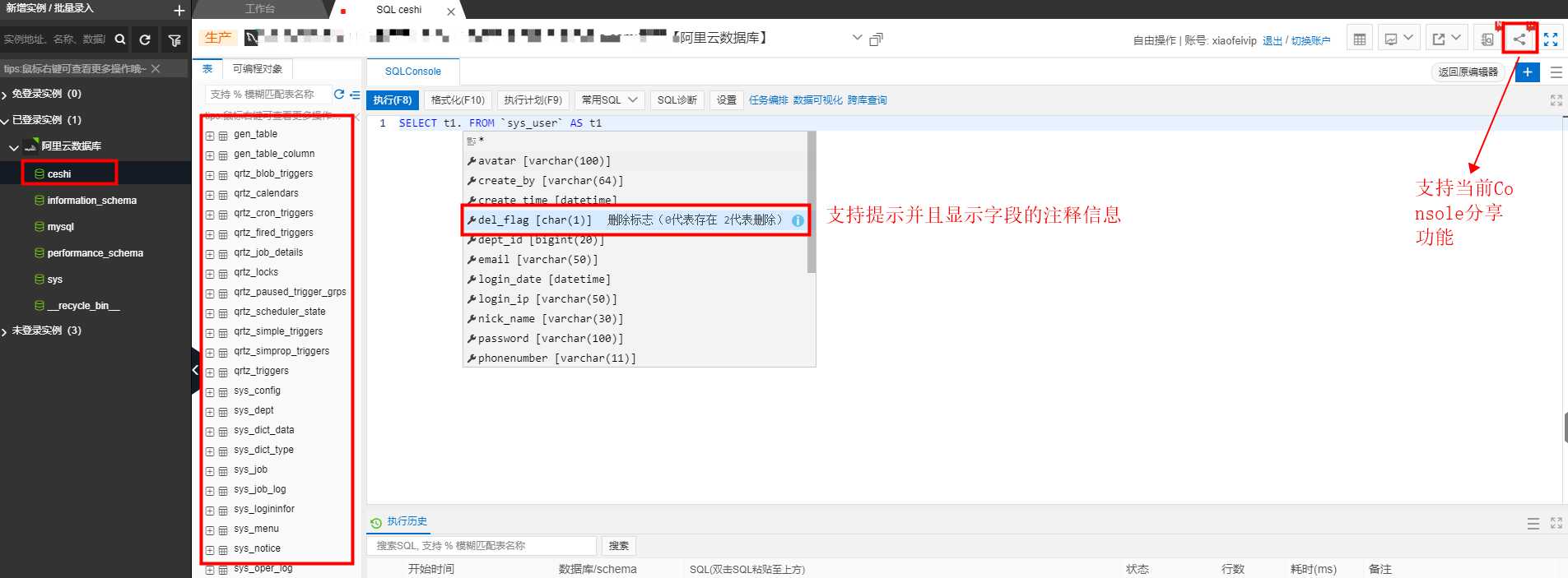 首页 > 软件工具>正文 非常好用的阿里云数据库管理工具 发布于 2021-01-10 小飞 (0) (4169) DMS是基于阿里巴巴集团十余年的数据库服务平台的云版本,提供免安装、免运维、即开即用、多种数据库类型与多种环境统一的web数据库管理终端;可以为企业用户快速复制搭建与阿里集团同等安全、高效、规范的数据库DevOps研发流程解决方案。 阿里云DMS数据库管理工具官网传送 帮助与文档传送 使用添加数据库 输入连接信息 基本介绍 SQL格式化、SQL诊断、代码生成器、数据追踪、数据库克隆、测试数据创建等。还有很多功能请参考文档。 打赏