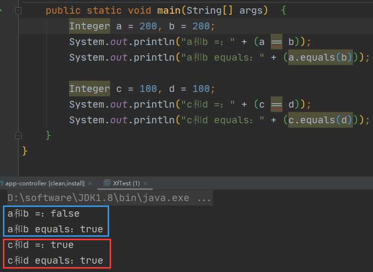 可以看到,两个包装类且值都是200的使用 == 的比较的结果都是false,使用equals比较是true。