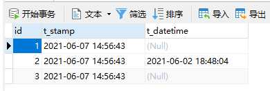 可以看到 t_stamp列自动帮我们填充了当天的时间。这个特性使得我们可以物协程序维护数据更新时间字段,而交由 MySQL 完成。