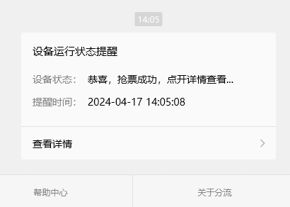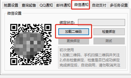4、点击微信通知,扫描二维码进行绑定,抢到票之后会微信通知你的。