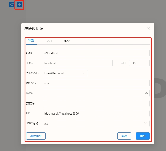 创建数据源测试并连接