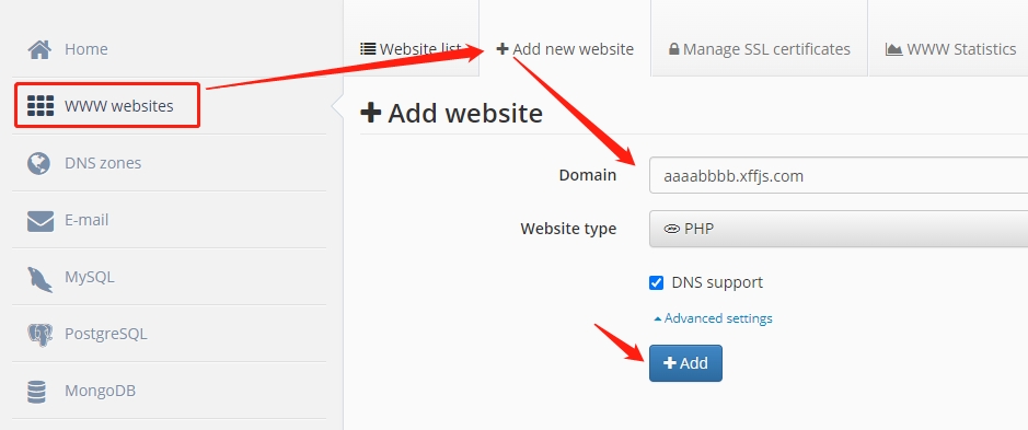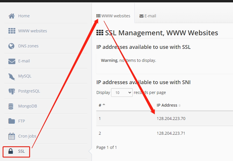 1、点击左侧的SSL—》WWW websites—》复制第一个IP