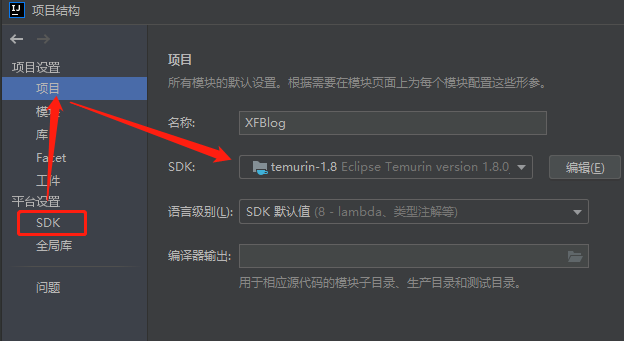 选择项目结构,添加刚刚下载的SDK,接着在项目里面选择最新的SDK即可