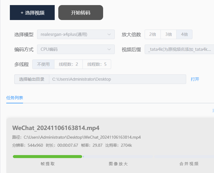 如果你选择的是普通视频,模型直接默认选择通用,如果是动漫视频,模型一定要选择第四个「realesr-animevideov3(动漫视频)」