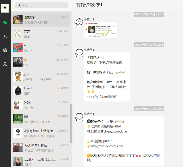 还有哦,这个软件可以管理多个账户的聊天记录呢。要是你想切换账号,就在软件左边点击那个图标就行啦。