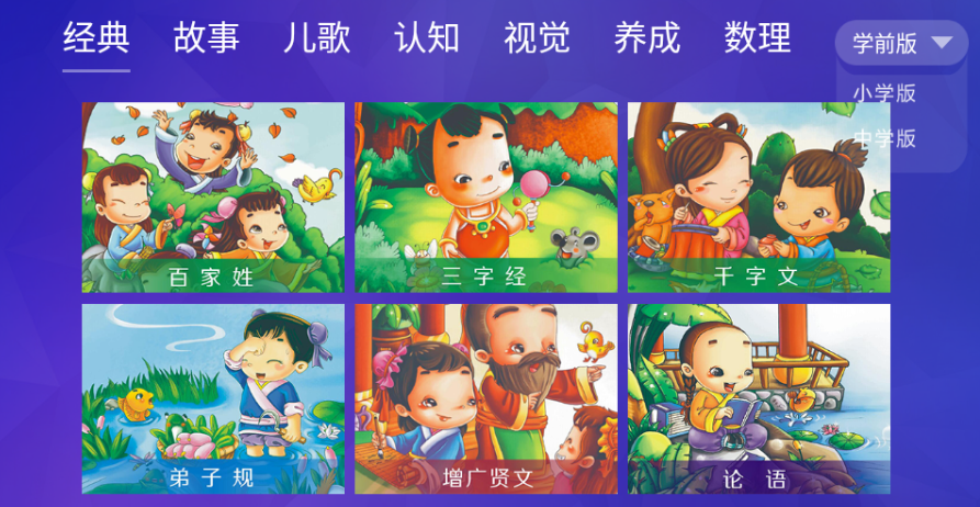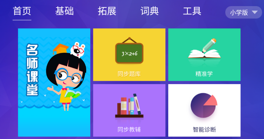2、打开首页就能看到,从学前到高中的各种课程都在这儿,有基础、拓展、词典和工具几大板块。