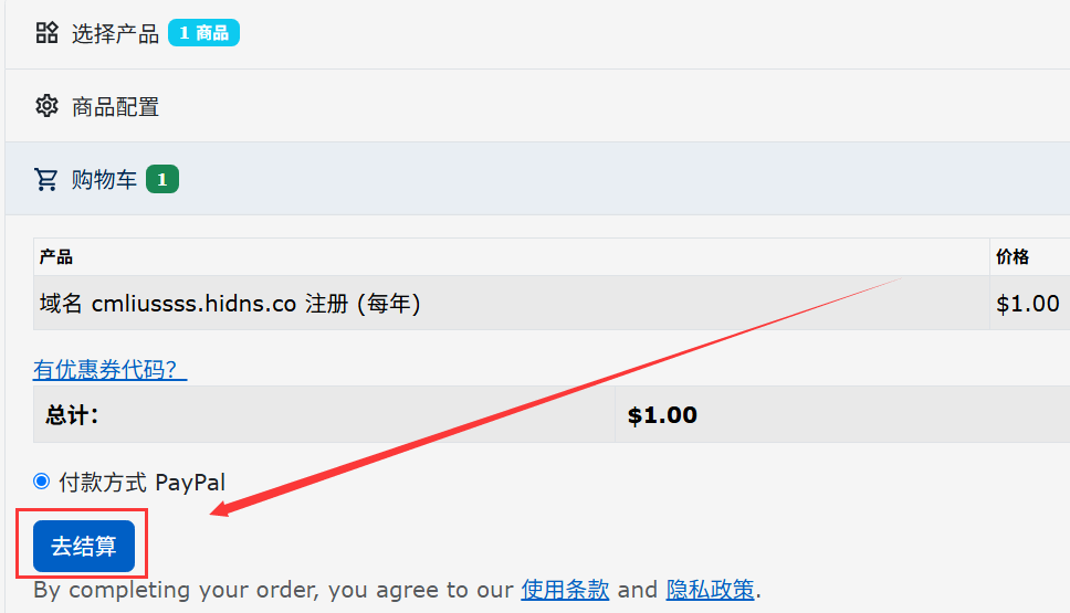3、点击 去结算,然后直接关闭弹出的 PayPal 窗口。