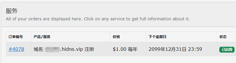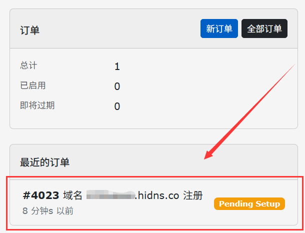 1、登录您的HiDNS账号,点击新订单