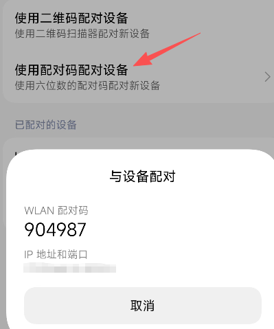 5、开启无线调试模式,点击 使用配对码配对设备,记录下这个码