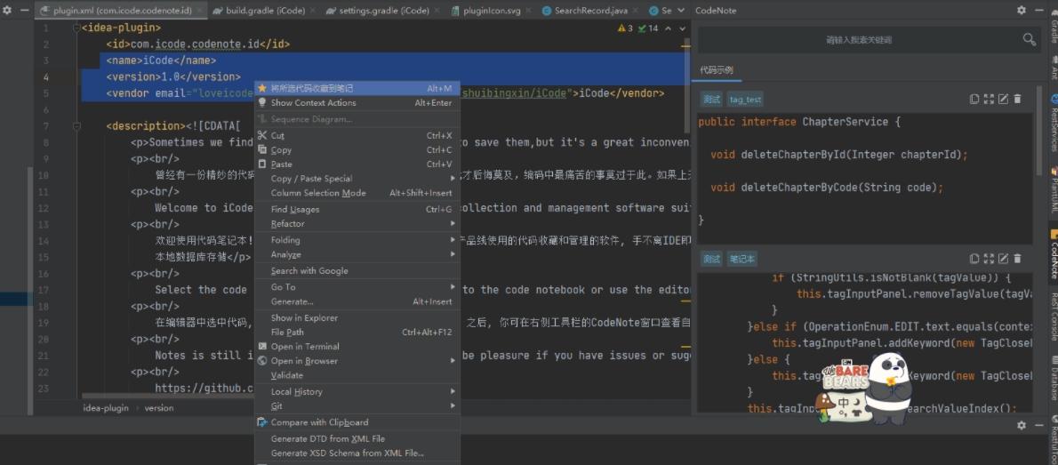 插件说明:智能编码,代码补全,代码搜索,代码示例搜索,代码文档搜索,代码生成