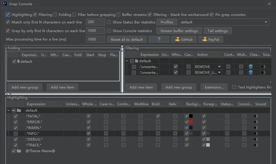 可以为输出的日志修改颜色,具体配置请在设置中Other Settings中找到GrepConsole即可!