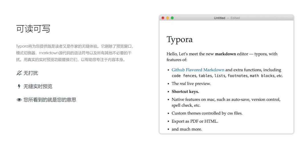 Typora是一款轻便简洁的Markdown编辑器,支持即时渲染技术,这也是与其他Markdown编辑器最显著的区别。即时渲染使得你写Markdown就想是写Word文档一样流畅自如,不像其他编辑器的有编辑栏和显示栏。
