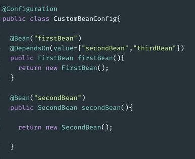 @DependsOn注解可以配置Spring IoC容器在初始化一个Bean之前,先初始化其他的Bean对象。